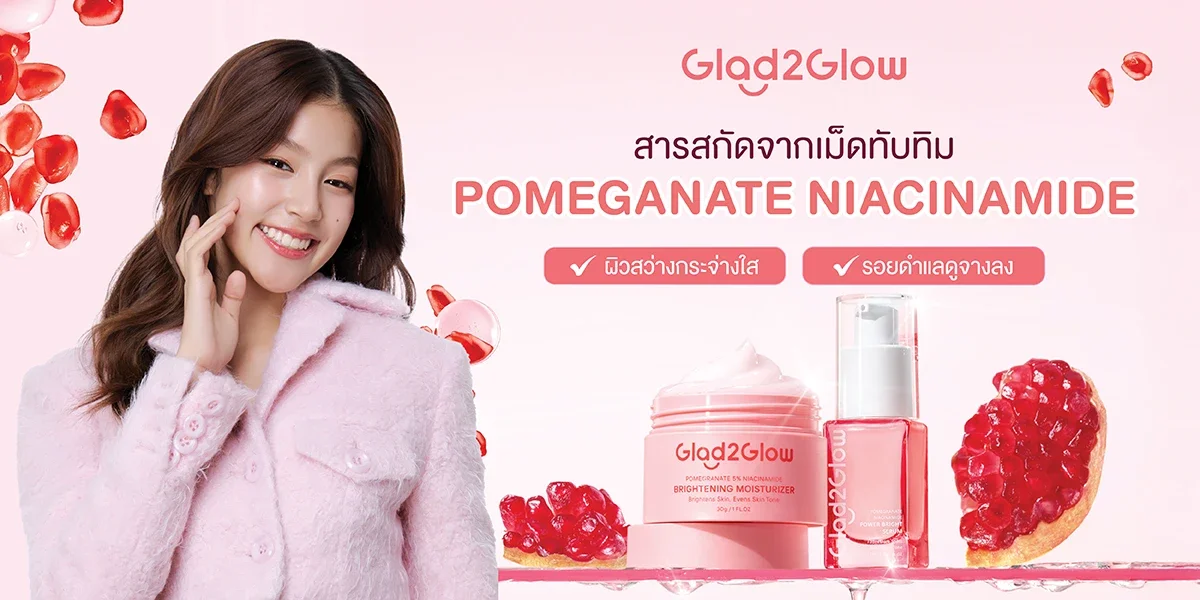 Glad2Glow โพเมเกรเนต ไนอะซินาไมด์ ไบรท์เทนนิ่ง มอยซ์เจอร์ไรเซอร์ 30 กรัม