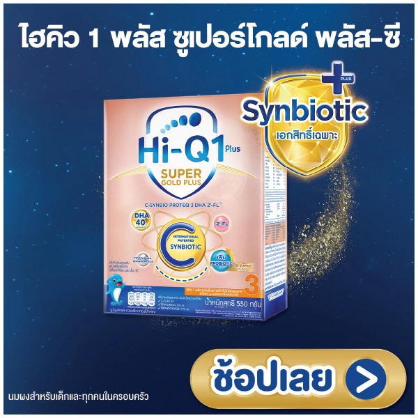 นมผงไฮคิว 1 พลัส ซูเปอร์โกลด์พลัส ซี-ซินไบโอโพรเทก สูตร3 550 กรัม