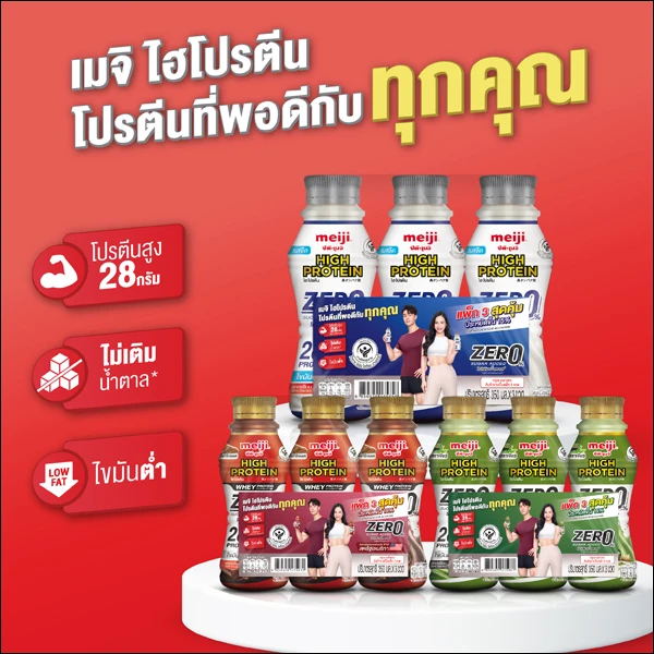 นมพาสฯเมจิ ไฮโปรตีน 350 มล. ชาเขียว (แพ็ก 3 ขวด)