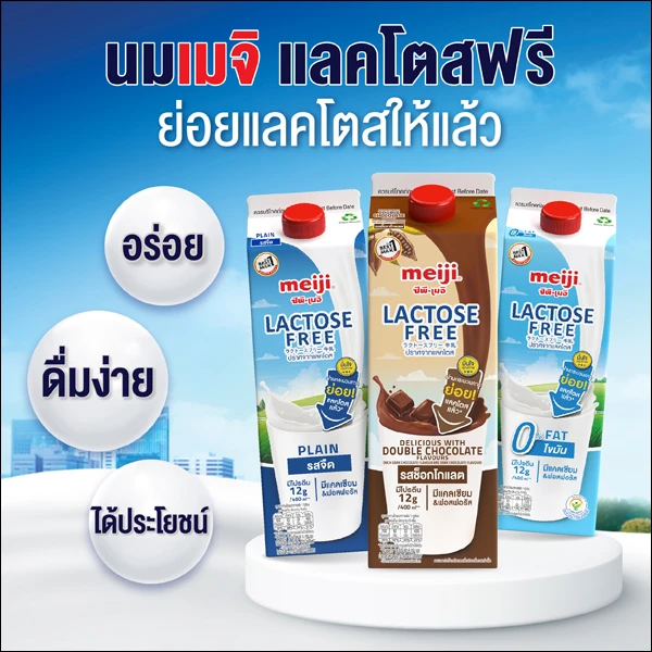 นมเมจิปราศจากน้ำตาลแลคโตส รสไขมัน0% 400 มล.