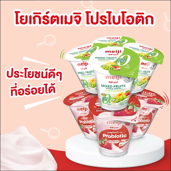 โยเกิร์ตไม่มีไขมัน รสผลไม้รวมผสมธัญพืช (ตราเมจิ) 135 กรัม แพ็ก 4