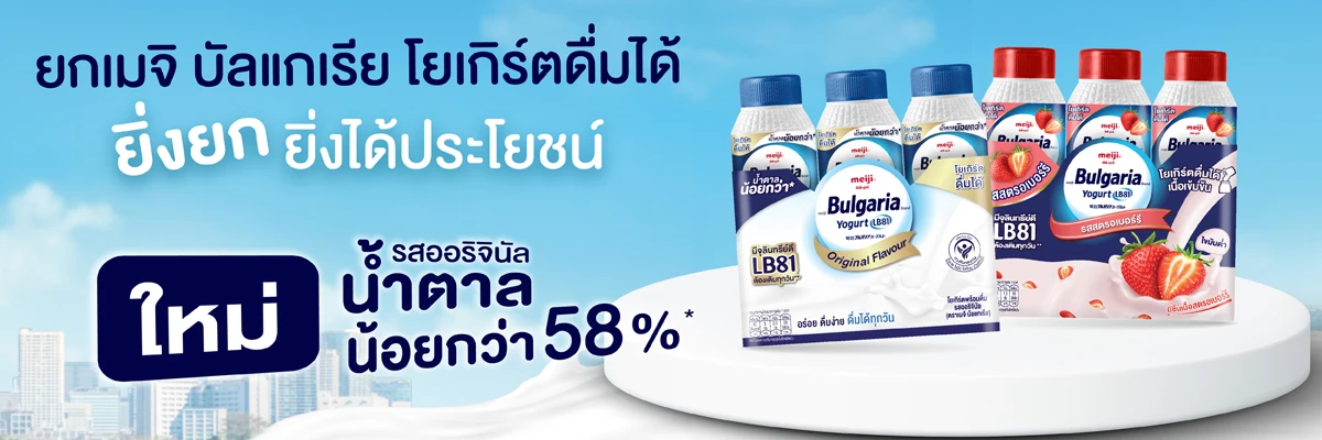 โยเกิร์ตพร้อมดื่มเมจิบัลแกเรีย 150 มล. แพ็ก 3 รสสตรอเบอร์รี