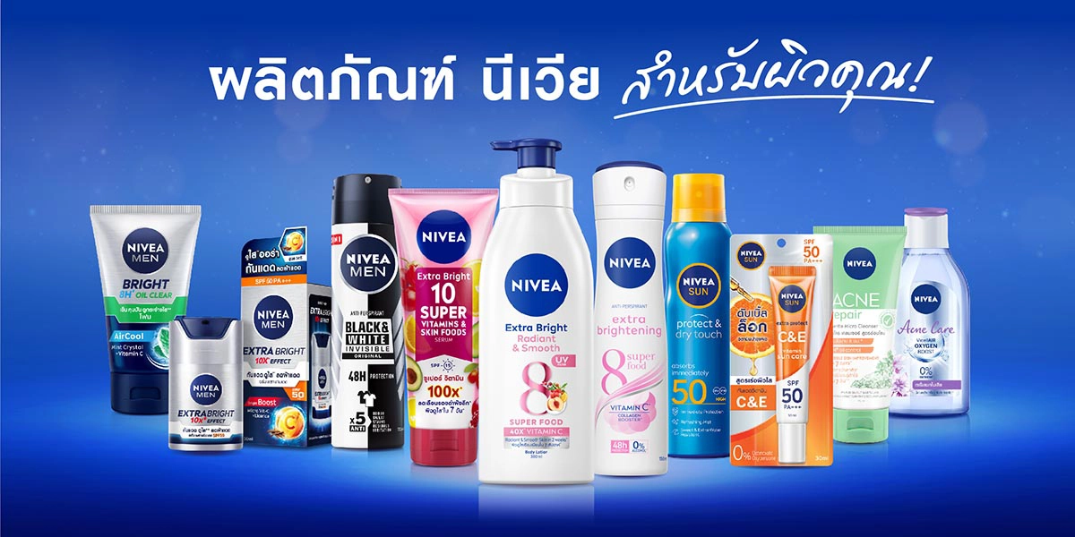 Nivea เป็นแบรนด์ผลิตภัณฑ์บำรุงผิวที่มีชื่อเสียงระดับโลก ผลิตภัณฑ์บำรุงผิวหน้า ผิวกาย ครีมกันแดด และโลชั่นต่างๆ ที่ช่วยให้ผิวชุ่มชื้นและดูอ่อนเยาว์